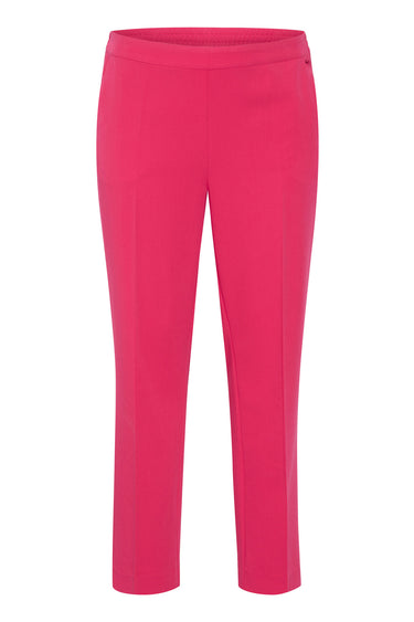 OBS! Fjernlager. Levering kan blive forlænget med 2-3 dage, hvis varen ikke findes i vores butik lige nu.Flotte bukser fra Kaffe Curve med et straight-leg snit, elastikkant i taljen og lommer i siderne. Bukserne har også en lækker kvalitet og fine pressefolder langs fronten.