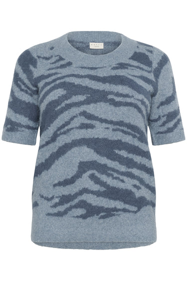 OBS! Fjernlager. Levering kan blive forlænget med 2-3 dage, hvis varen ikke findes i vores butik lige nu.Smart strik fra fra Kaffe Curve med korte ærmer, rund hals og et smart mønster.