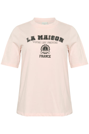 OBS! Fjernlager. Levering kan blive forlænget med 2-3 dage, hvis varen ikke findes i vores butik lige nu.Smart tee fra Kaffe Curve med ½ lange ærmer, rund hals og et fint print på brystet.