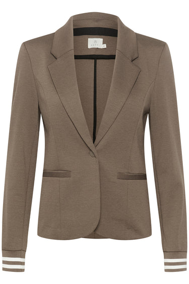 OBS! Fjernlager. Levering kan blive forlænget med 2-3 dage, hvis varen ikke findes i vores butik lige nu.Flot blazer fra Kaffe med et lille sporty touch.Blazeren har en flot klassisk silhuet, åbentstående krave og en lækker kvalitet. Den er også detaljeret med smarte farverige striber i foret og i bunden af ærmerne.