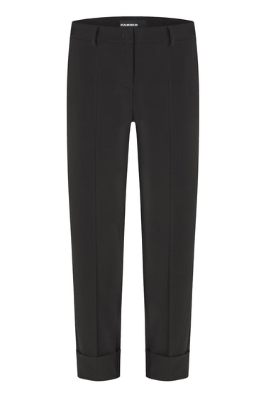 OBS! Fjernlager. Levering kan blive forlænget med 2-3 dage, hvis varen ikke findes i vores butik lige nu.Lækre bukser fra Cambio med en dejlig blød kvalitet, et klassisk snit og et sofistikeret udtryk med syninger langs fronten og opsmøg i bunden af benene.