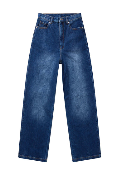 OBS! Fjernlager. Levering kan blive forlænget med 2-3 dage, hvis varen ikke findes i vores butik lige nu.Jeans fra Munthe med smukke klassiske detaljer og brede ben. Bukserne er designet med for- og baglommer og lukkes med en lynlås, og en enkelt knap.