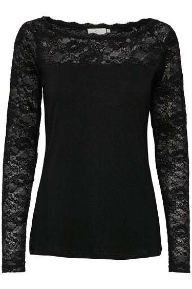 - Smuk langærmet top fra Kaffe med en tætsiddende pasform, bådudskæring i halsen og de smukkeste blonder der giver den et rigtig fint og feminint udtryk.