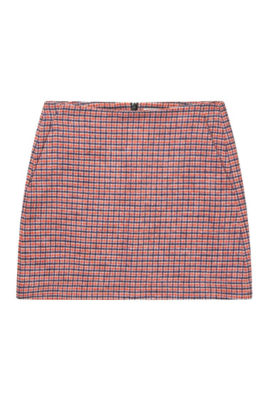 OBS! Fjernlager. Levering kan blive forlænget med 2-3 dage, hvis varen ikke findes i vores butik lige nu.En elegant, kort, ternet nederdel med fine skrå lommer i siden. Denne nederdel lukkes med en lynlås bagpå og er designet til at være tætsiddende.