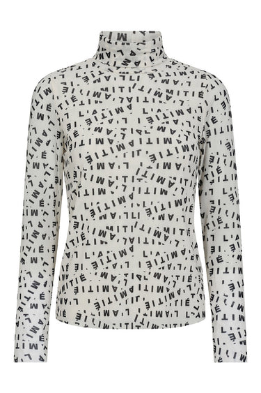 OBS! Fjernlager. Levering kan blive forlænget med 2-3 dage, hvis varen ikke findes i vores butik lige nu.Flot top fra Haute L'amitié med lange ærmer, rullekrave i halsen og et cool logo print.
