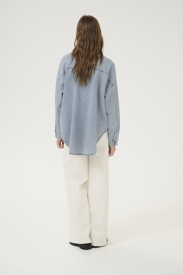 - OBS! Fjernlager. Levering kan blive forlænget med 2-3 dage, hvis varen ikke findes i vores butik lige nu.Smart denim bluse fra My Essential Wardrobe med lange ærmer, krave i halsen og en fin lomme på brystet.