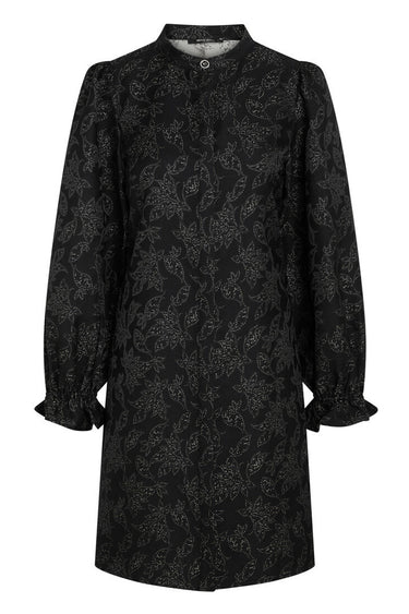OBS! Fjernlager. Levering kan blive forlænget med 2-3 dage, hvis varen ikke findes i vores butik lige nu.Feminin kjole fra Bruuns Bazaar med lange let puffede ærmer, kinakrave i halsen og smukke detaljer.