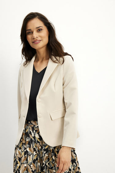 Flot og stilren blazer fra In Front med lange ærmer, klassisk krave om halsen og knaplukning i fronten. Blazeren er også detaljeret med lommeflapper.