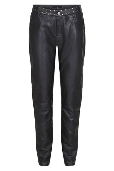 Smarte skindbukser fra BTFCPH med cool sølvnitter i taljen og smarte syninger der giver bukserne et råt udtryk.