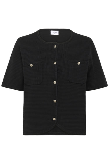 OBS! Fjernlager. Levering kan blive forlænget med 2-3 dage, hvis varen ikke findes i vores butik lige nu.Sød cardigan fra Saint Tropez med korte ærmer, rund hals og fine lommer på brystet.