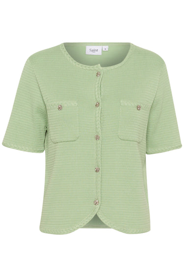 OBS! Fjernlager. Levering kan blive forlænget med 2-3 dage, hvis varen ikke findes i vores butik lige nu.Sød cardigan fra Saint Tropez med korte ærmer, rund hals og fine lommer på brystet.