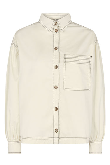 OBS! Fjernlager. Levering kan blive forlænget med 2-3 dage, hvis varen ikke findes i vores butik lige nu.Flot skjorte fra Mos Mosh med en løstsiddende silhuet, skjortekrave i halsen og lange ærmer. Skjorten er også detaljeret med en fin lomme på brystet, brede manchetter og knaplukning langs fronten.