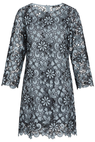- OBS! Fjernlager. Levering kan blive forlænget med 2-3 dage, hvis varen ikke findes i vores butik lige nu.Utrolig smuk blondekjole fra Bruuns Bazaar med ¾ lange ærmer, bådudskæring i halsen og en dejlig blød, aftagelig underkjole.
