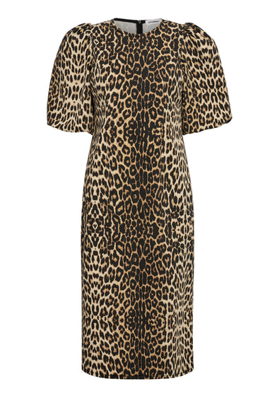 Cool kjole fra Co'couture med korte pufærmer, rund hals og en flot feminin silhuet.Kjolen har også en lækker denim kvalitet og et super smart leopard print.