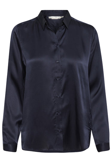 OBS! Fjernlager. Levering kan blive forlænget med 2-3 dage, hvis varen ikke findes i vores butik lige nu.Elegant silkeskjorte fra InWear med lange ærmer, en lille krave i halsen og knaplukning langs fronten.