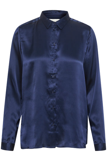 OBS! Fjernlager. Levering kan blive forlænget med 2-3 dage, hvis varen ikke findes i vores butik lige nu.Elegant silkeskjorte fra InWear med lange ærmer, en lille krave i halsen og knaplukning langs fronten.