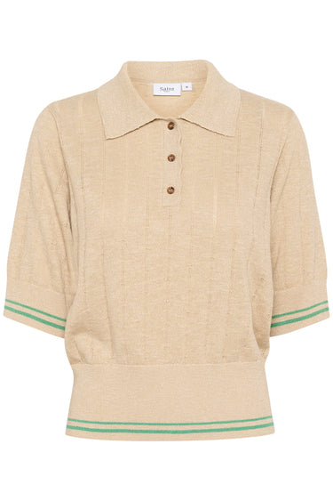 OBS! Fjernlager. Levering kan blive forlænget med 2-3 dage, hvis varen ikke findes i vores butik lige nu.Sød strik fra Saint Tropez med korte ærmer, en blød krave i halsen og et kort knappanel over brystet.