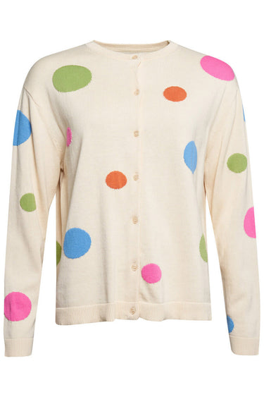 - Beautiful cardigan in a knitted quality with long sleeves, a round neck, and buttons all the way down the front. It has the loveliest circle pattern in different, bright and happy colors. It has a classic fit and is made from a pure and soft cotton quality.Use it as a stylish and feminine layer in your outfit.The style is called Jenny and is made from 100% cotton. The fit is 'Classic'.