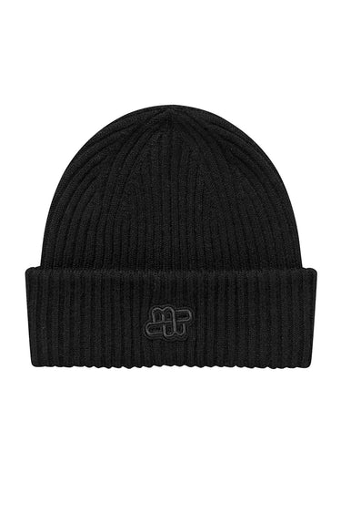 En smuk ribstrikket hue med et elegant MUNTHE-emblem på forsiden. Fremstillet af en blød blanding af genanvendt polyester.