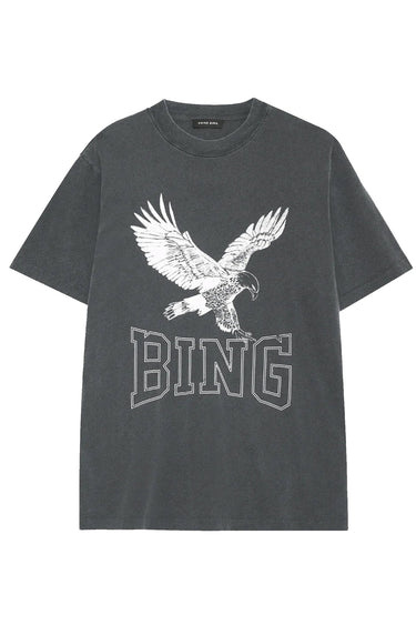 Blød og lækker t-shirt fra Anine Bing med rund hals, korte ærmer og et cool print på fronten.