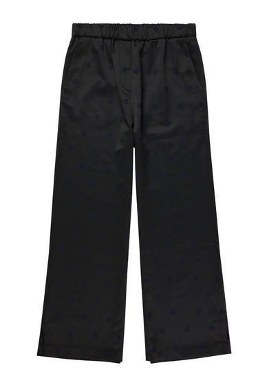 OBS! Fjernlager. Levering kan blive forlænget med 2-3 dage, hvis varen ikke findes i vores butik lige nu.Flotte jacquard bukser fra Munthe med lidt vidde i benene, en høj elastikkant i taljen og fine broderet MUNTHE logoer.
