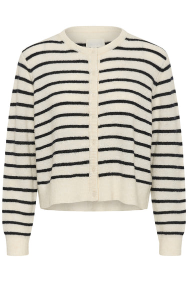 OBS! Fjernlager. Levering kan blive forlænget med 2-3 dage, hvis varen ikke findes i vores butik lige nu.Fin stribet cardigan fra Part Two med lange ærmer, rund hals og små knapper langs fronten.