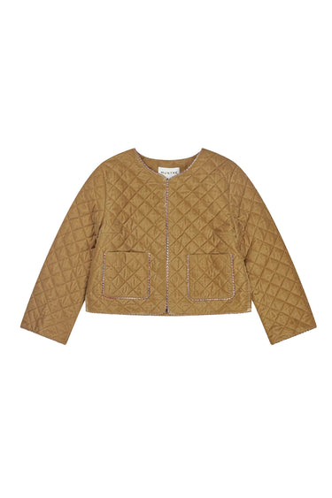 OBS! Fjernlager. Levering kan blive forlænget med 2-3 dage, hvis varen ikke findes i vores butik lige nu.Kort, smuk, quiltet velour jakke med elegant frynset piping. Jakken har knaplukning og fine lommer foran.