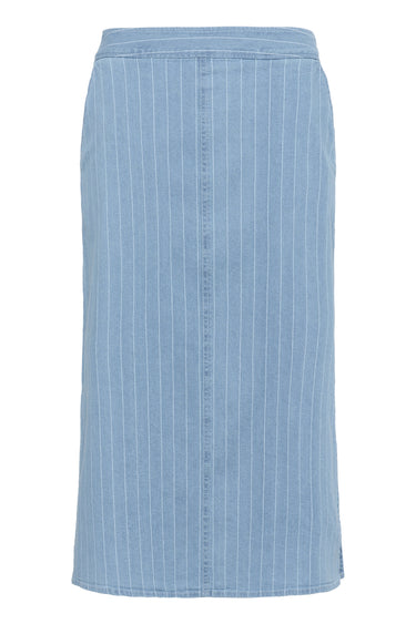OBS! Fjernlager. Levering kan blive forlænget med 2-3 dage, hvis varen ikke findes i vores butik lige nu.Flot denim nederdel fra Part Two med et klassisk pinstripe print, små slidser i siderne og en dejlig bomuldskvalitet.