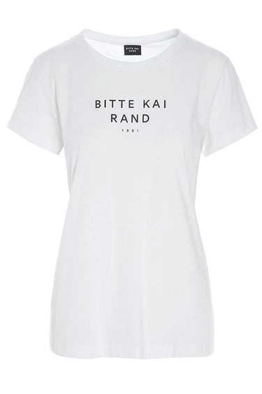 OBS! Fjernlager. Levering kan blive forlænget med 2-3 dage, hvis varen ikke findes i vores butik lige nu.Enkel, kortærmet t-shirt fra Bitte Kai Rand der sidder tæt til kroppen og giver en feminin silhuet. På brystet er printet teksten “BITTE KAI RAND 1981”. T-shirten er lavet af den fine pima bomuld, der udmærker sig ved at være særdeles blød og holde faconen
