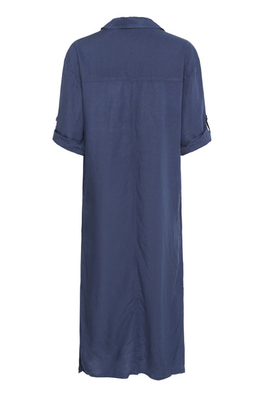 OBS! Fjernlager. Levering kan blive forlænget med 2-3 dage, hvis varen ikke findes i vores butik lige nu.Sød skjortekjole fra Part Two med ¾ lange ærmer, v-udskæring med en lille krave i halsen og en afslappet silhuet.
