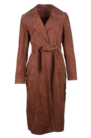 Flot lang ruskindsjakke fra BTFCPH med lange ærmer og en flot krave i halsen.