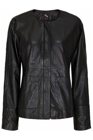 Enkel læderjakke fra BTFCPH med lange ærmer, rund hals og en blød og lækker kvalitet. Jakken lukkes med skjult lynlås langs fronten og den er dekoreret med store lommer og smarte syninger.