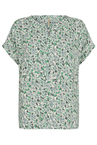 - Sød bluse fra Soyaconcept med korte ærmer, rund hals med en lille v-udskæring og et skønt blomstret print.