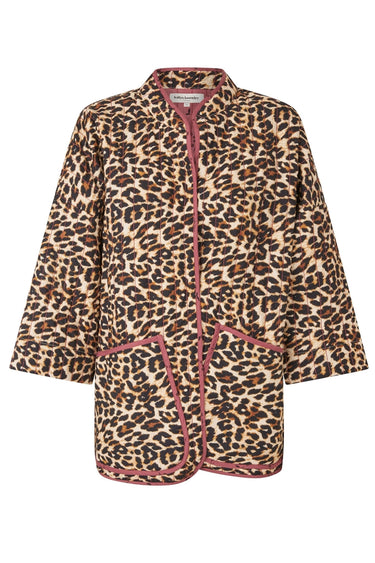 - OBS! Fjernlager. Levering kan blive forlænget med 2-3 dage, hvis varen ikke findes i vores butik lige nu.Smart oversized jakke fra Lollys Laundry med ¾ lange ærmer, store lommer foran og et cool leopard print i naturlige farver.