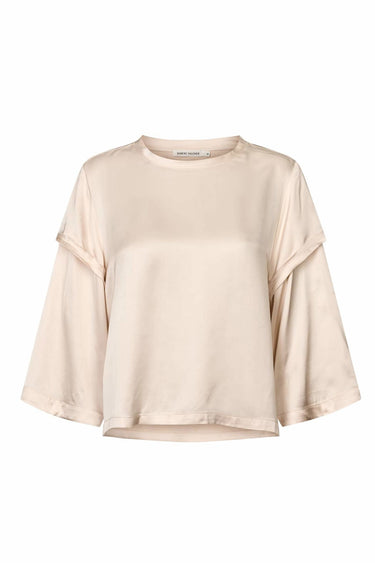OBS! Fjernlager. Levering kan blive forlænget med 2-3 dage, hvis varen ikke findes i vores butik lige nu.Elegant bluse fra Rabens Saloner med ¾ lange ærmer, rund hals og en lækker kvalitet.