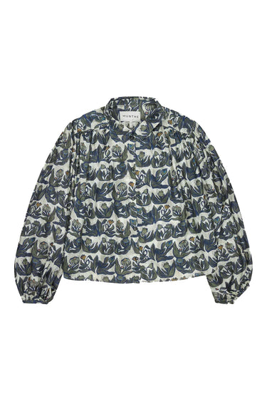 OBS! Fjernlager. Levering kan blive forlænget med 2-3 dage, hvis varen ikke findes i vores butik lige nu.Skjorte med et smukt all-over print og elegante, brede, løse ærmer. Denne skjorte er designet med lange ærmer og en fin knaplukning.