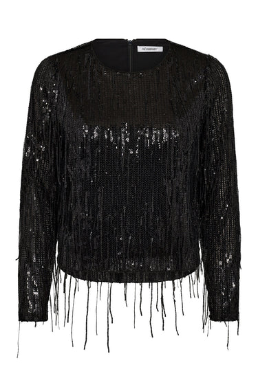 OBS! Fjernlager. Levering kan blive forlænget med 2-3 dage, hvis varen ikke findes i vores butik lige nu.Smart paillet bluse fra Co'couture med lange ærmer, rund hals og skønne frynser i bunden.
