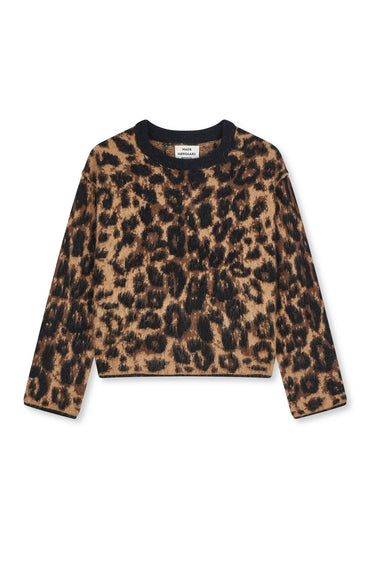 OBS! Fjernlager. Levering kan blive forlænget med 2-3 dage, hvis varen ikke findes i vores butik lige nu.Cool strik fra Mads Nøørgaard med lange ærmer, rund hals og et cool leopardprint.