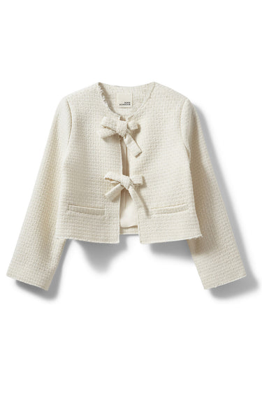 OBS! Fjernlager. Levering kan blive forlænget med 2-3 dage, hvis varen ikke findes i vores butik lige nu.Smuk jakke fra Sofie Schnoor med lange ærmer, rund hals og fine bindebånd på fronten samt en flot kvalitet og en let cropped længde.