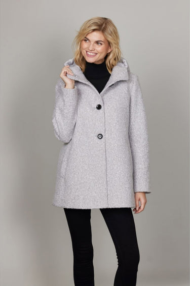 OBS! Fjernlager. Levering kan blive forlænget med 2-3 dage, hvis varen ikke findes i vores butik lige nu.Elegant jakke fra Junge med lange ærmer, hætte og stiklommer i siderne.Jakken har også store knapper langs fronten og den lækreste teddy kvalitet.