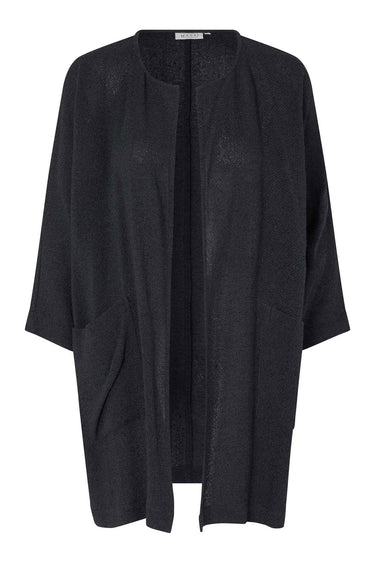 OBS! Fjernlager. Levering kan blive forlænget med 2-3 dage, hvis varen ikke findes i vores butik lige nu.Smart åbentstående jakke fra Masai med ¾ lange ærmer, rund hals og en fin vævet kvalitet.