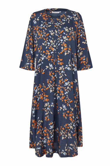 OBS! Fjernlager. Levering kan blive forlænget med 2-3 dage, hvis varen ikke findes i vores butik lige nu.Flot kjole fra Masai med ¾ lange ærmer, rund hals og knaplukning langs fronten. Kjolen har også et flot print og en dejlig let kvalitet.