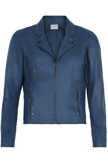 - Smart kort jakke fra In Front. Jakken har krave, lommer med lynlås og lukkes foran med lynlås. Yderligere er jakken dekoreret med små nitter ved lommerne og på kraven
