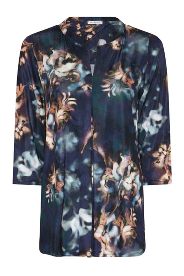 - OBS! Fjernlager. Levering kan blive forlænget med 2-3 dage, hvis varen ikke findes i vores butik lige nu.Sød bluse fra In Front med 3/4 lange ærmer og kinakrave med v-hals.Blusen har et skønt print i smukke farver, en afslappet pasform og en flot kvalitet.