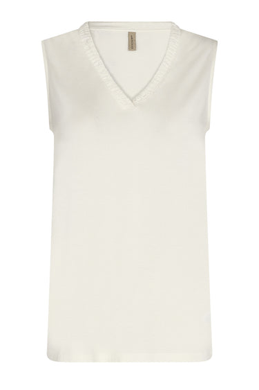 Fin top fra Soyaconcept med v-udskæring i halsen og små flæsekanter.