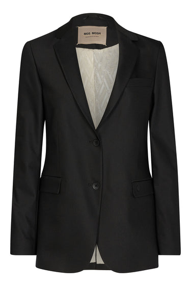 - Smart blazer fra Mos Mosh i et lettere afslappet fit. Blazeren har lange ærmer og er designet til at lukkes med to knapper i fronten. Den er en anelse længere end normalt.