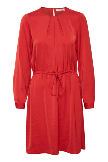 OBS! Fjernlager. Levering kan blive forlænget med 2-3 dage, hvis varen ikke findes i vores butik lige nu.Feminin kjole fra InWear med lange ærmer, rund hals og en smal bindesnor i taljen.Kjolen har også en afslappet silhuet og en super fin kvalitet.
