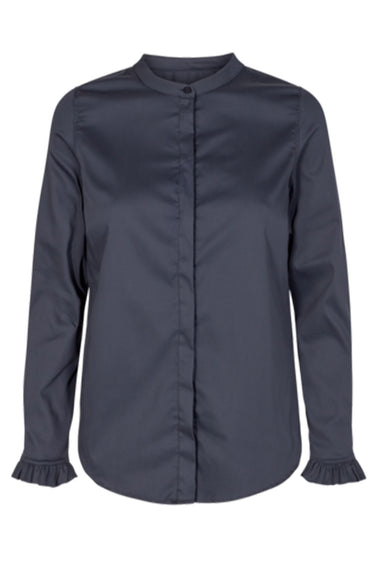 - Smart Skjorte med knakkelukning foran fra Mos Mosh. Skjorten har ingen krave og en lille flæsekant på ærmet.