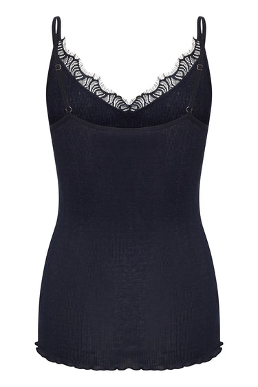 OBS! Fjernlager. Levering kan blive forlænget med 2-3 dage, hvis varen ikke findes i vores butik lige nu.Feminin top fra Saint Tropez med smalle justerbare skulderstropper, en flot blondekant og en lækker blød kvalitet.