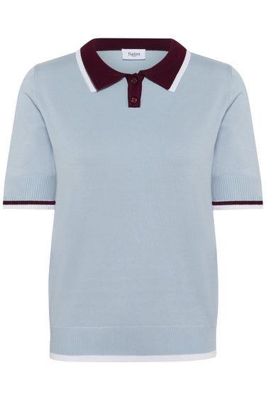 OBS! Fjernlager. Levering kan blive forlænget med 2-3 dage, hvis varen ikke findes i vores butik lige nu.Sød strik fra Saint Tropez med korte ærmer, rund hals med en lille krave i halsen og en dejlig blød kvalitet.